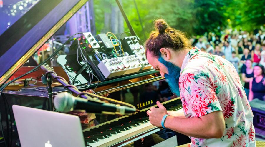 רון מיניס מגיע עם זקן כחול להעביר כיתת אמן. דמיינו פסנתר כנף ענק שנשפכים ממנו מיליון חוטי חשמל כפתורים ואורות מהבהבים. יחד עם המתופף יוגב גבאי והבסיסט ליאור עוזרי הם מביאים את הטריו ג'אז הכי ברוטאלי שיצא לעולם לשמוע.